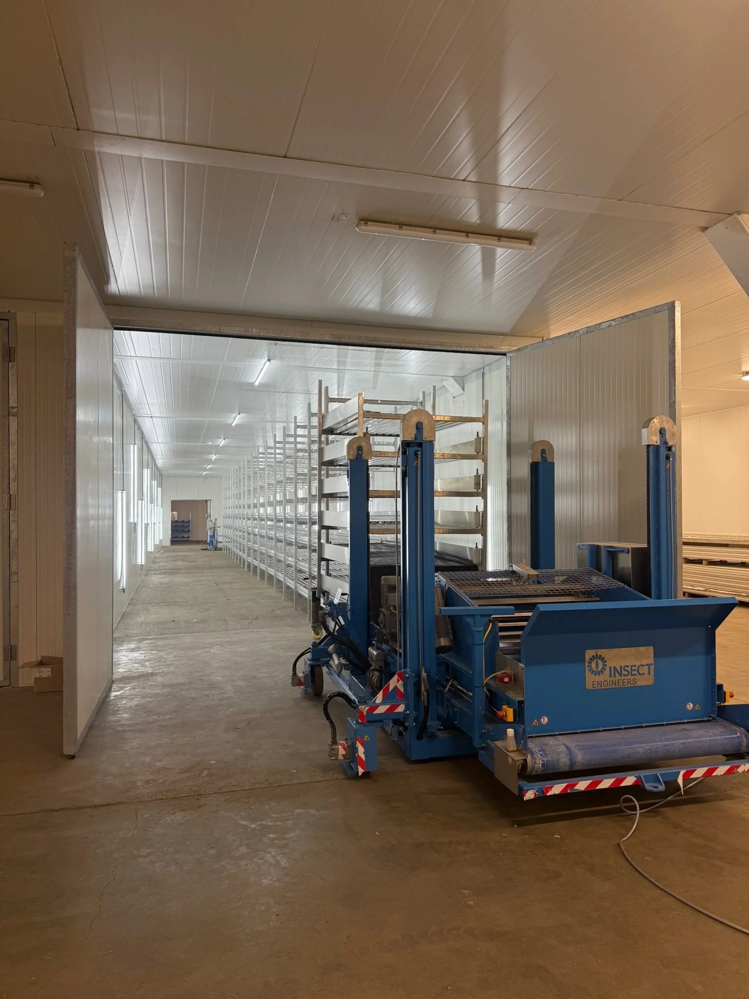 We chose proven industrial systems and rebuilt them to our standards. In just ten weeks, we moved from farming system demolition to the first production room’s racking being complete. Today, nine rooms are in commission, with production continuing to scale in measured steps. Our senior entomology team guides the black soldier fly life cycle, from the “love cages” to neonates, nursery, and activation, ensuring consistency at full-scale production. We have also partnered with APHA (Animal and Plant Health Agency), a vital engagement to collaboratively help us set a credible industry benchmark.